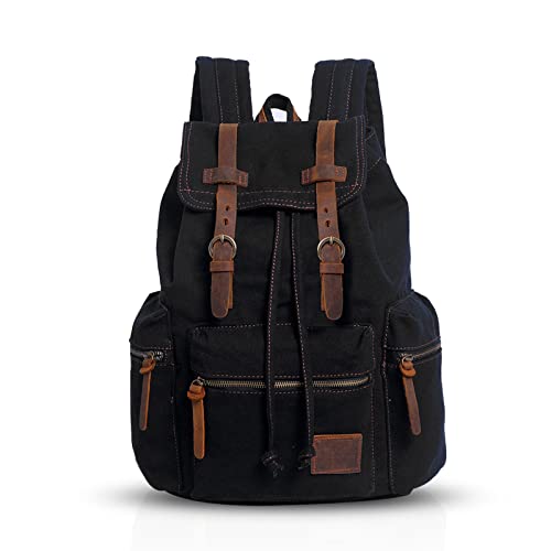 DASKING Retro herr liten kanvas portfölj vardaglig crossbody-messenger axelväska vardagsväska skolväska väska laptopväska, Svart