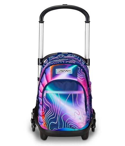 Seven Skolväska Flex 3 hjul, blå, Shadefull Boy, 3-i-1, trippelanvändning, ryggsäck med avtagbar vagn, flaskhållare och crossover-system, reseskolryggsäck, barn, Blå, Taglia unica, Ryggsäck Ryggsäckar