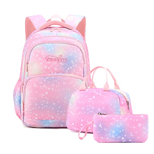 Tanou Skolryggsäck flicka 3 st med lunchväska pennfodral, 22 liter andningsaktiv skolväska tonåring flicka för 3–9 klass, ryggsäck skola för resor, Rosa kärlek, Ryggsäck