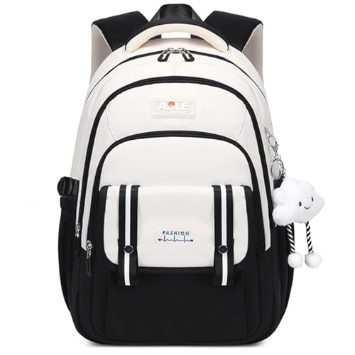 Tanou skolväska flicka 3:e till 9:e Klass, stor barnryggsäck ryggsäck ryggsäck för tonåringar vattentät, fashionabel skolväska flickor dagryggsäck med hänge, svart