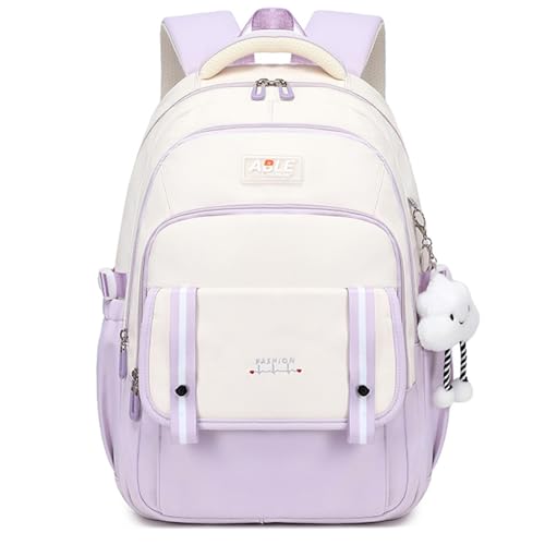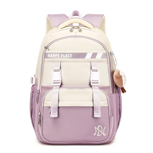 Tanou skolväska flicka 3:e till 9:e Klass, stor barnryggsäck ryggsäck ryggsäck för tonåringar vattentät, fashionabel skolväska flickor dagryggsäck med hänge, lila, M