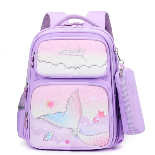 IvyH Barnryggsäck flicka ryggsäck barn 6–10 år, skolväska flicka 1–3. Klass skolväska stor för grundskola och förskola för skola och resor, 8540# lila