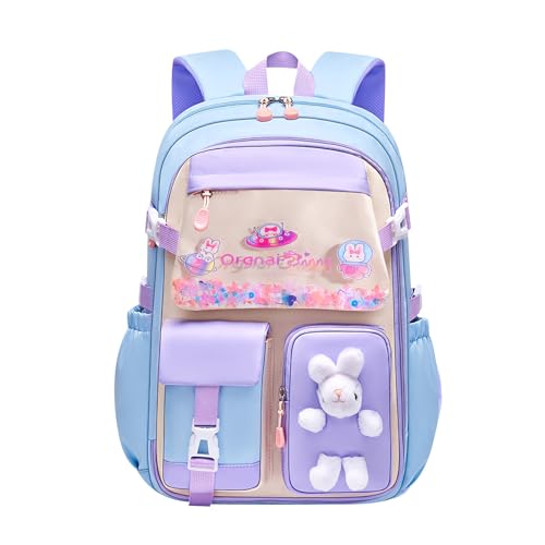 FANDARE Söt barnryggsäck, barnryggsäck, skolväska, flicka, pojke, skolryggsäck, bokväskor, ryggsäck, vattentät, lätt, skolväska, axelväska, för utomhus, resor, skola, dagryggsäckar, Blå lila A, L