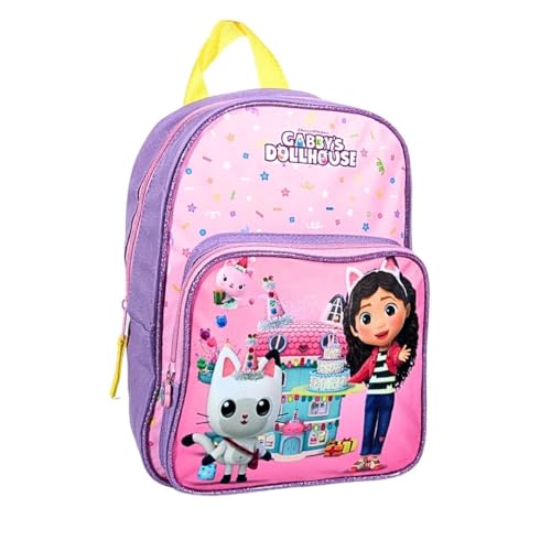 mybagstory Ryggsäck för flickor - rosa - barn - skola - dagis - dagis - primär - skolväska flicka - justerbara remmar - presentidé - rosa - gabby's dolhouse - 31,5 cm, Rosa - Gabby - framficka, 31,5
