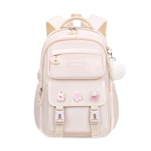 HYC00 Skolryggsäck Flicka Skolväska Lätt Ryggsäck Tjej Tonåring Bokväskor Skola Skolväskor Pojkar Laptop Ryggsäck Dam 14 Tum College Bag Fritidsryggsäck för Kvinnor Casual Dagsryggsäck,Beige