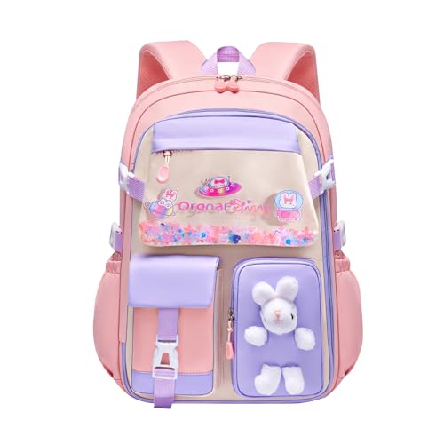 FANDARE Söt barnryggsäck, skolväska, flicka, pojke, skolryggsäck, bokväskor, ryggsäck, universitet, axelväska för utomhusbruk, resor, skola, dagryggsäck med bagagefixeringsrem, ROSA, L, Ryggsäck