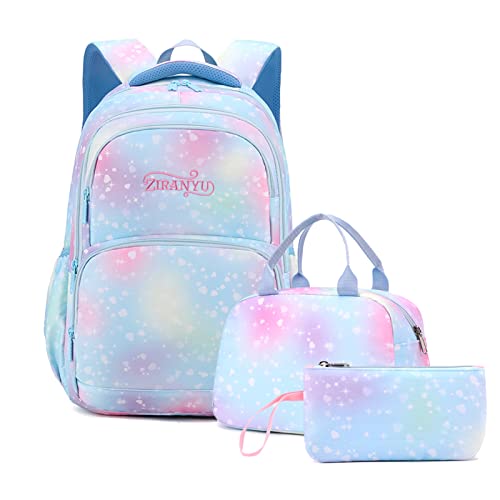 Tanou Skolryggsäck flicka 3 st. med lunchväska pennfodral, 22 liter andningsaktiv skolväska tonåring flicka för 3–9 klass, ryggsäck skola för resor, Blå kärlek, Einheitsgröße, modern