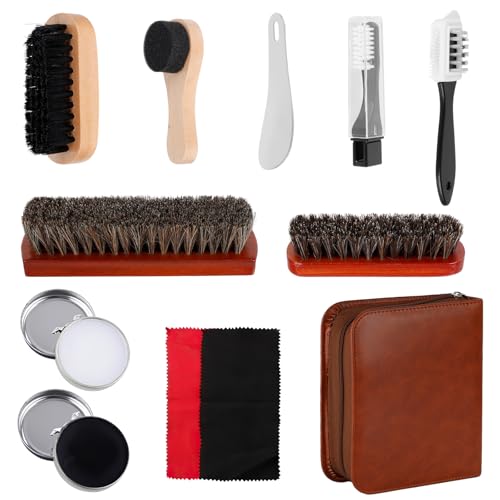 NZZVNZ 12-delat skorengöringsset, skovårdsset, skopolska borstar, skoputs-reseset med borstset, skokräm, träapplikator, skosked, /, Einheitsgröße