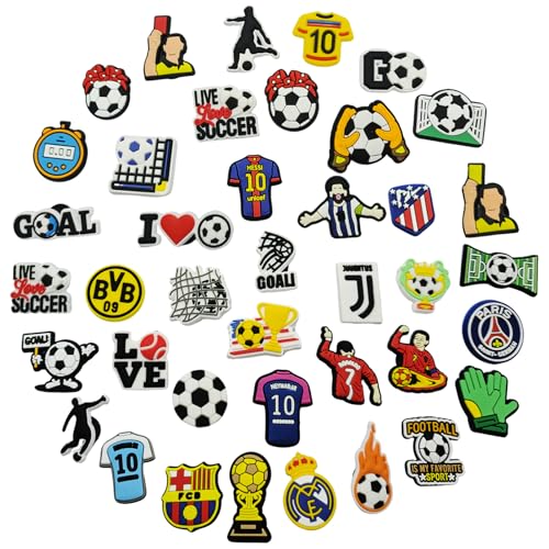 AYSYR 40 stycken fotbollstaggar för Crocs, PVC berlocker för Crocs, söta pluggset för hål skor, tecknade tillbehör för Crocs, för gör-det-själv dekoration skor fotbollspresent fest