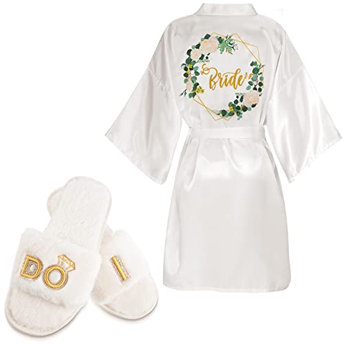 3 delar brudtofflor brud brudtärnor fest kort satin morgonrock bröllop brud luddig I Do and I Do Crew tofflor skor, Vit, grön, M