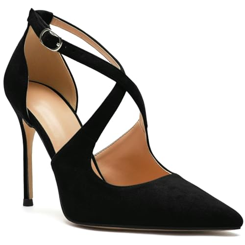 Sko klackar-eleganta pumps för kvinnor-stilett-sexig stilett-spetsig tå stängd tå-kväll-fest-lyxig mode-korsrem 54-CHC-19, Svart A1, 38.5 EU