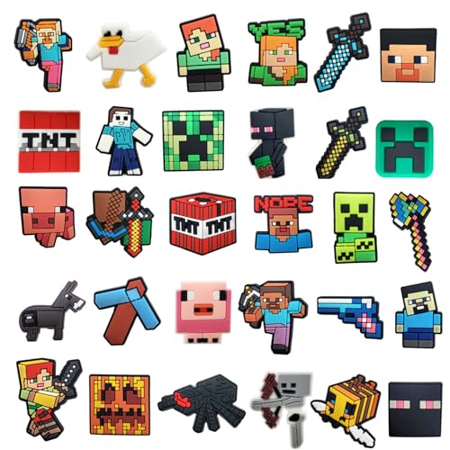 LIUYIDM 30 stycken skohänge, träskor dekoration PVC skor dekorationer gruva hantverk sko spännen, tecknad anime spel berlocker sko tillbehör för pojkar flickor män kvinnor fest födelsedag