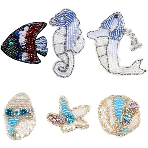 GORGECRAFT 6 stilar strass pärlor applikation kristall pärla havsdjur ocean liv snäcka sjöstjärna sy på broderi lappar för gör-det-själv hantverk fest klänning kostym jeans skor väska hatt dekor