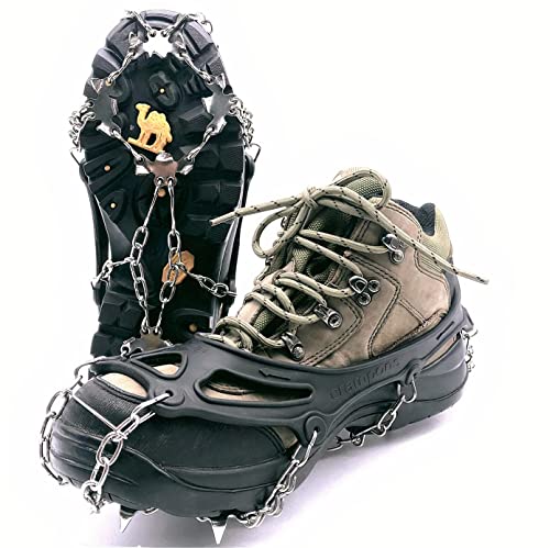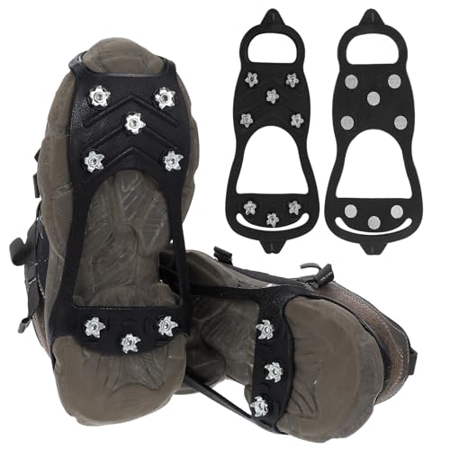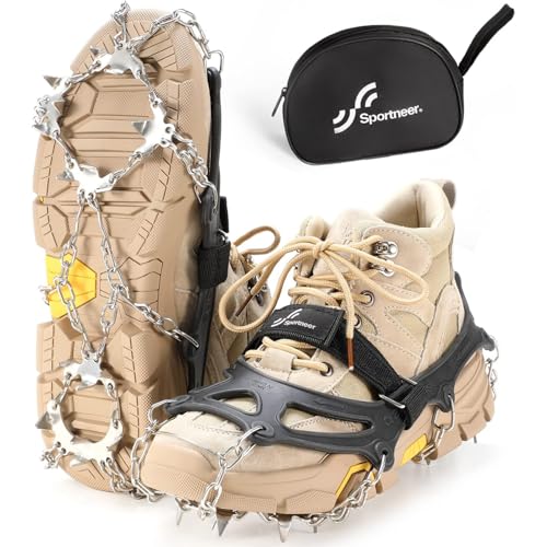 Sportneer Stegjärn för vandringskängor, stegjärn för promenadstövlar, 19 spikar, rostfritt stål, halkfria klätterstegonger för skor, stövlar, säkert skydd för promenader, klättring, vandring på snö, svart, L