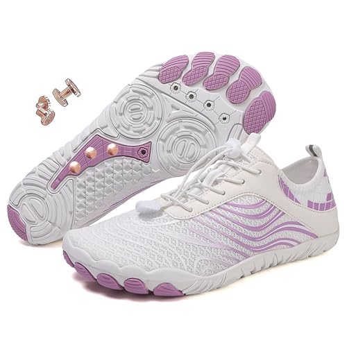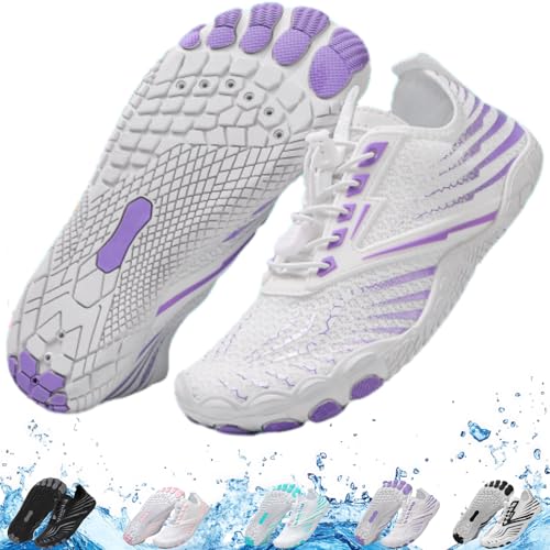 Vandring barfotaskor skor dam män, vandring barfota halkfria vattenskor, vattentäta slip-on bred tå låda sneakers, Vit lila, 37 EU