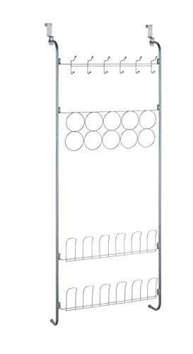 WENKO Dörrförvaring, mångsidig dörrhylla för kläder, handdukar och skor att hänga upp, hängande hylla för skåp & garderob, 59 x 150,5 x 18,5 cm, pulverlackerad metall, silver