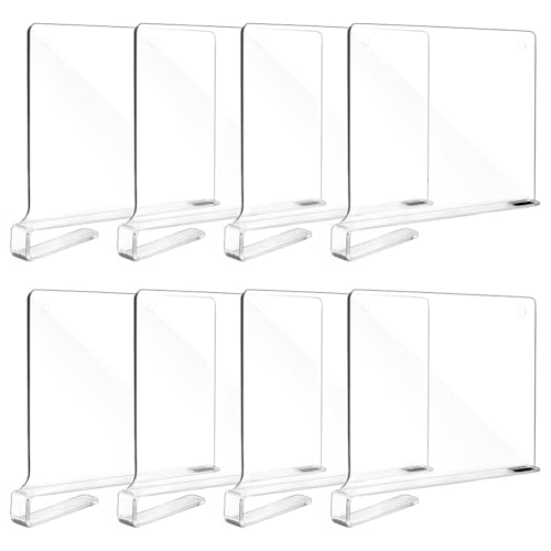 BAKAJI Set med 8 genomskinliga akrylavdelare för hyllor, multifunktionell garderobsavdelare, separatorlådor, kläder, handdukar, garderob, hyllor, skor, 28 x 3 x 22,5 cm