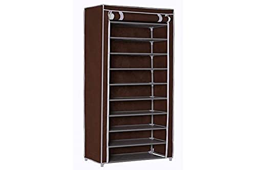BAKAJI Sko Sko Garderob 11 Hyllor 60x30x175cm Upp till 30 Par Skor Stål Struktur och TNT Tyg Beläggning Vattentät med Zip Stängning Dammtät (Brun)