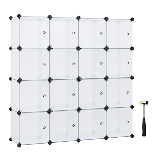 Songmics Hyllsystem med 16 kuber, förvaringsskåp för barn, garderob med dörrar, skohylla av plast, hylla, mångsidig, skor, leksaker, 123 x 31 x 123 cm, vit LPC906W01