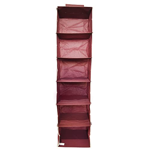 Organizer Garderob 15 x 30 x 84 cm, med 6 hyllor, Spara utrymme för hängande för tröjor, T-Shirt, Skor, Väskor - Röd - House Collection