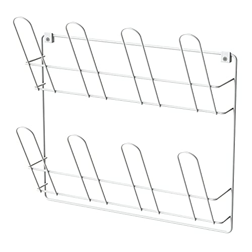LM 322/2 Väggmonterat skoställ för små utrymmen, kan monteras på vägg, i garderob eller i skåpstomme, rymmer fyra par skor, 42 cm bred, vit epoxi/ståltråd