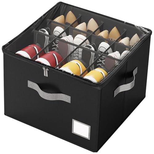 SYEXDZON Skoarrangörer, Sko Box Förvaring för Garderob, Skoförvaringsarrangörer med Blixtlåsbart Klart Täckande och Förstärkta Handtag, Vikbar Skobehållare för Stövlar Hälar Sneakers (Svart)