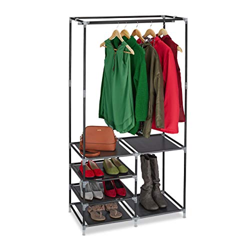 Relaxdays Öppen garderob, skohyllor för 10 par skor, klädstång, garderob HBT: 160 x 84 x 43 cm, svart