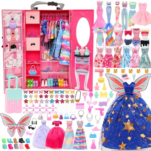 Yutoy Dressing Doll - Garderob Set-dockor, med garderobskläder, med prinsessdocka, skor, tillbehör, garderob docka med tillbehör och kläder och mega omklädningsrum