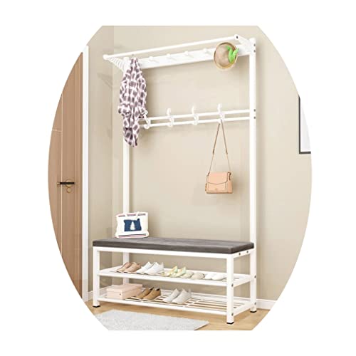 LHHL Stort Klädhängare Fristående Hallträd Garderobställ Med Krokar Sittbänk Metallram Garderob För Kläder Handväska Sko Metallram För Hall Ingång Kontor (Color : White graey, Size : 100x33x170cm)