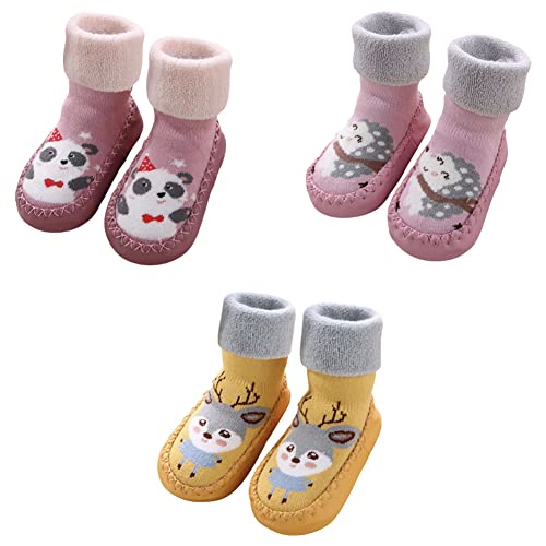 FedMois Baby Pojkar Flickor Strumpor Skor Med Halkskydd Tofflor Skor 3-Pack, rådjur, igelkott och panda, Storlek 21/22, (Tillverkarens storlek: 14)