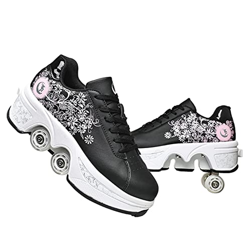 LDRFSE Skor Med Hjul - Rullskridskor, Skateboard, Barnskor, Skridskor, Rullskor, Sportskor, Löparskor, Sneakers för Flickor Och Kvinnor - Svart Silver, 35 EU