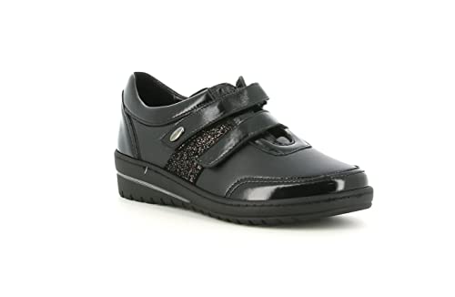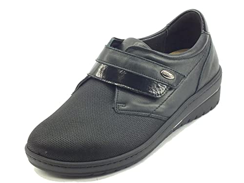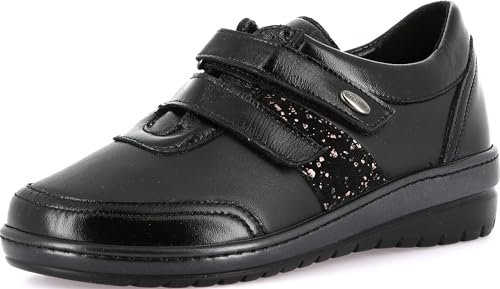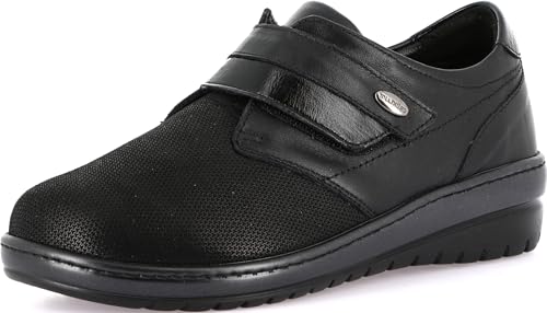 GRÜNLAND Dam Nile bekväm sko med kardborreband för dagligt bruk, lämplig, avtagbar Re-Soft innersula av kork och läder och 3,5 cm hög kilklack, svart, 41 EU
