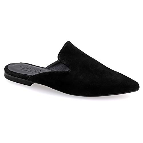 Emmanuela läder spets mulldjur för kvinnor, bekvämt mjukt läder loafers, lädersoffa i läder, mules slide on sommarskor, högkvalitativa platta skor i svart, svart, 38 EU