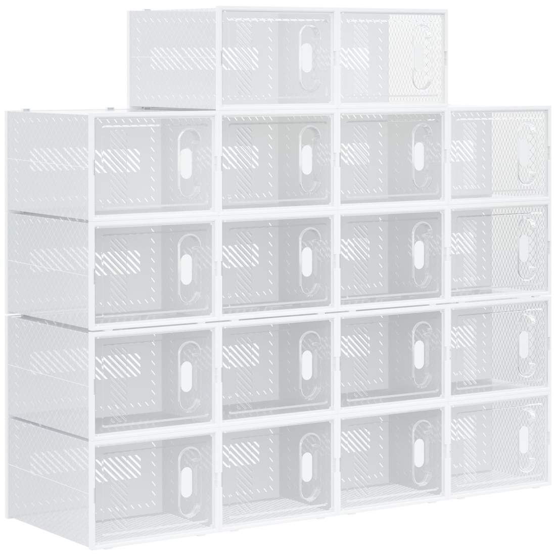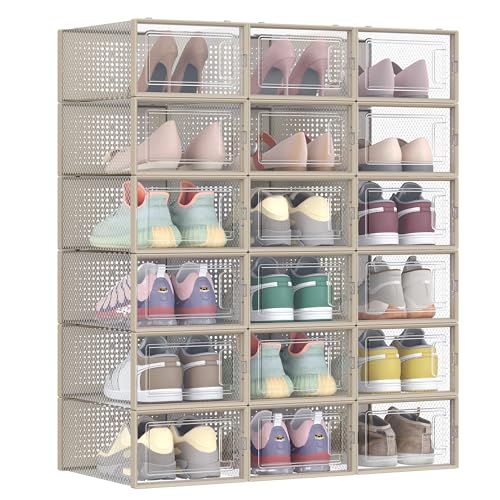 Set med 18 skokartonger, skoförpackning med magnetdörrar, skokartong med lock, skoförvaring i plast, för skor upp till storlek 4