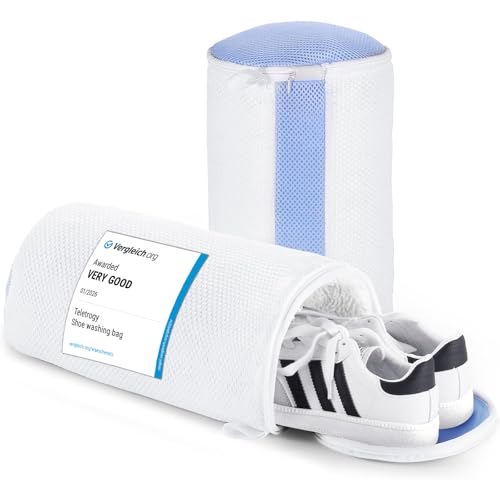 Teletrogy Set med 2 tvättpåsar för skor med villi, nättvättpåsar med dragkedja för återanvändbara skor, tvättväskor för sneakers, stor storlek 32 x 18 cm - vit