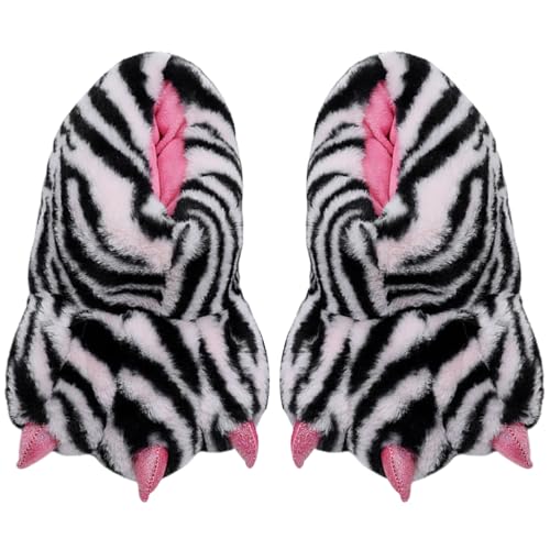 CNAFGBGG Tasstofflor för kvinnor halkfria termiska zebra klotofflor tyst monster med kristallfoder fuktsäker djur för kvinnor och flickor sko storlek 38.