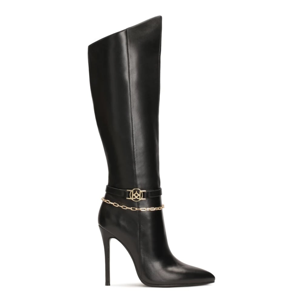 Kazar, Skor , Dam, 38 EU, Läder, Svarta höga stilettstövlar med dekorativ kedja.Denna produkt har stor storlek.