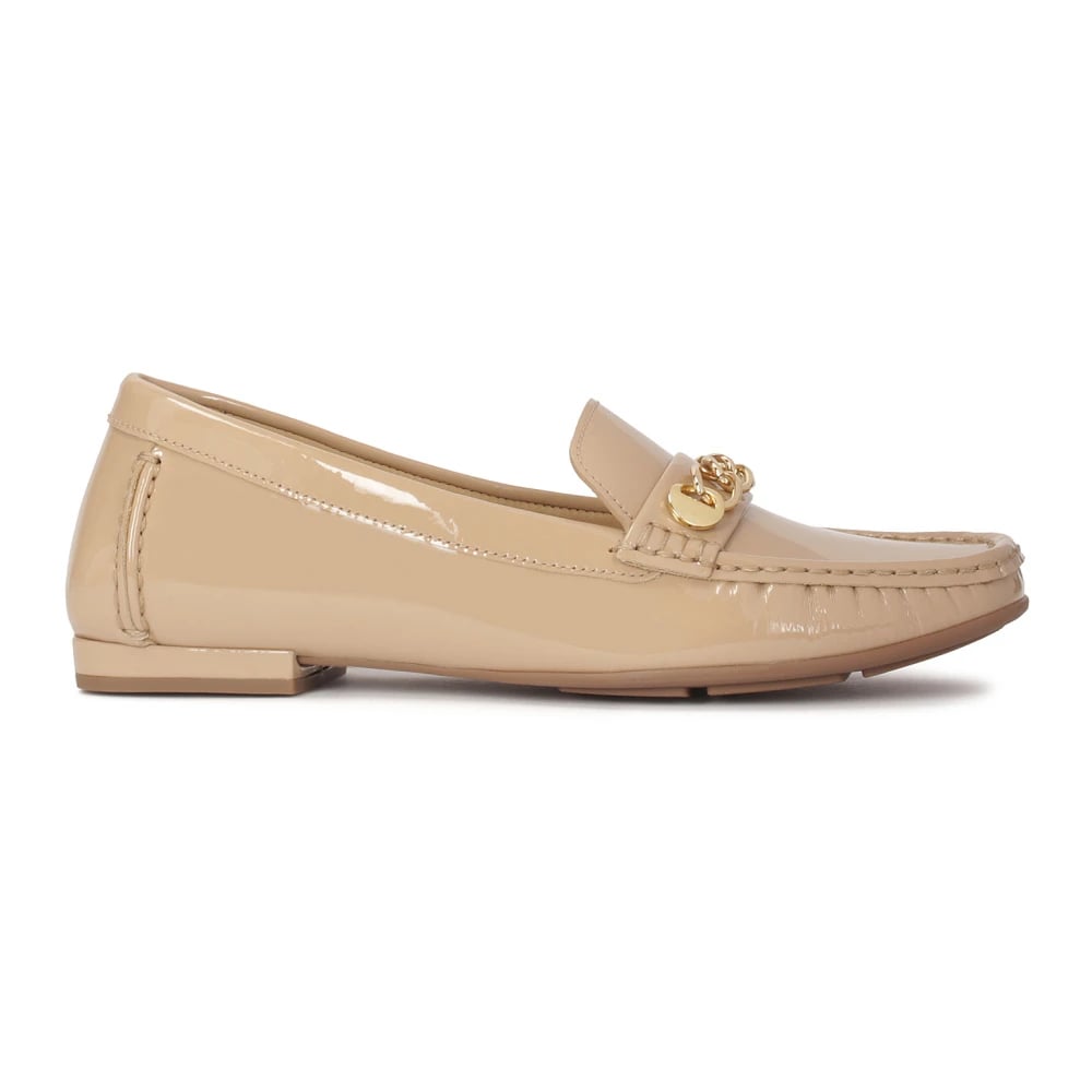 Kazar, Skor , Dam, 38 EU, Mocka, Lackade mockasiner med metallkedja.Denna produkt har stor storlek.