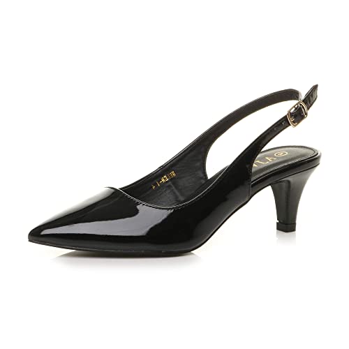 AJVANI dam damer låg mellanklack 50-tal slingback spänne spetsig domstol skor storlek, Svart patent, 38 EU