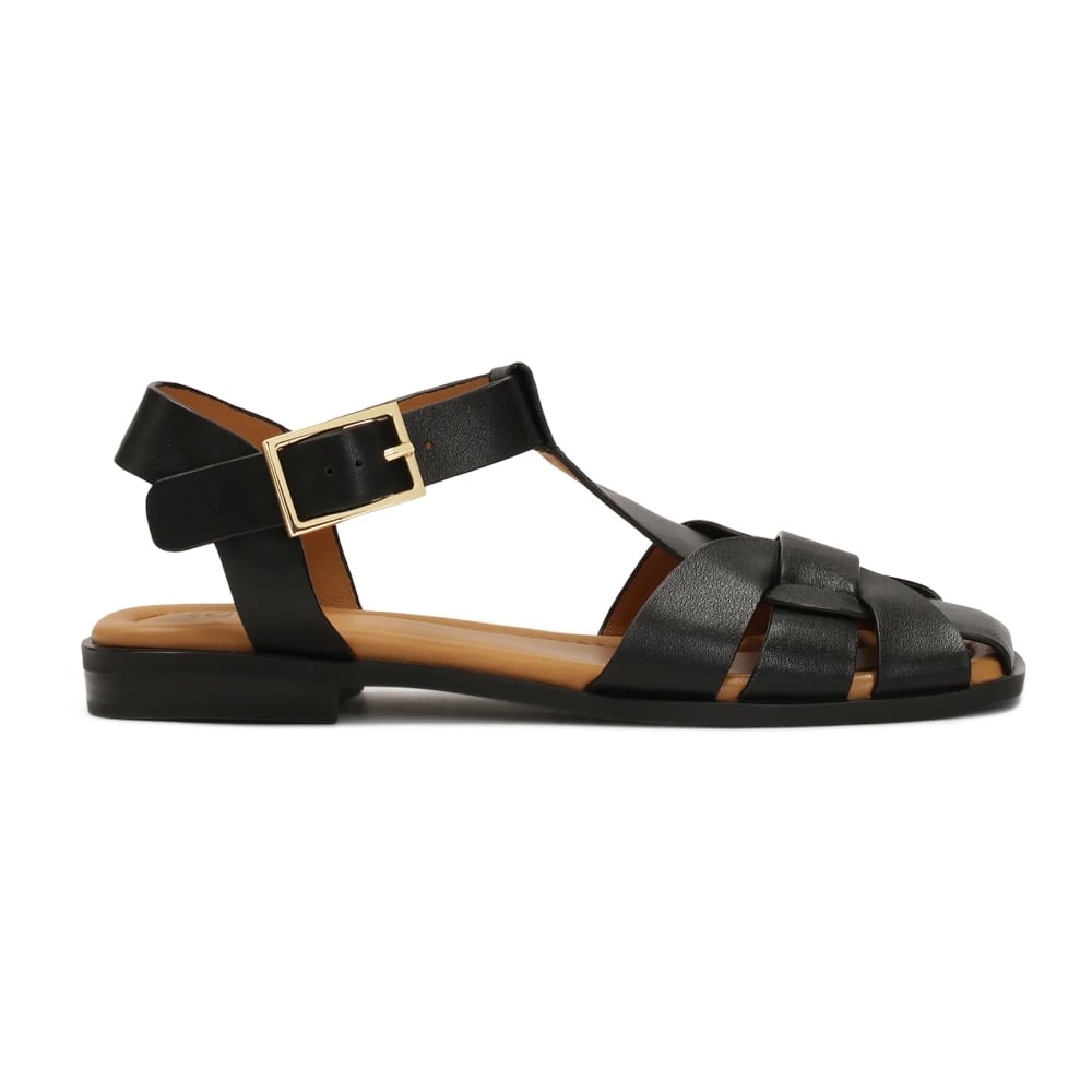 Kazar, Skor , Dam, 38 EU, Läder, Svarta lädersandaler.Denna produkt har stor storlek.