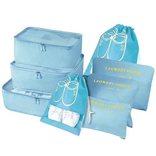 AiQInu Resväska, set med 8 researrangör, packkuber, toalettväska, kläder, skor, kosmetiska väskor för resor och bagage väskor