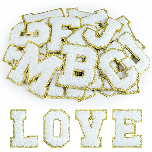 Morcheiong Självhäftande bokstavslappar i chenille, A–Z, påstrykningsbara bokstäver för gör-det-själv-kläder, tyg, skor, väskor, 26 st (vit)