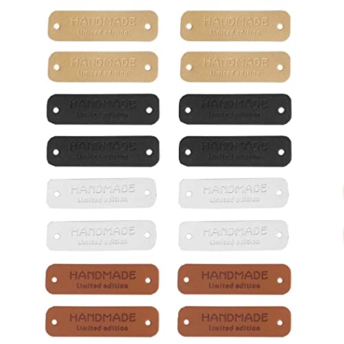 Borsgye 80 st PU-läder taggar handgjorda präglade taggar falskt läder sy på etiketter utsmyckning virkning stickningsetiketter gör-det-själv jeans väskor skor hatt kläder tillbehör – 1,5 x 5 cm – 4