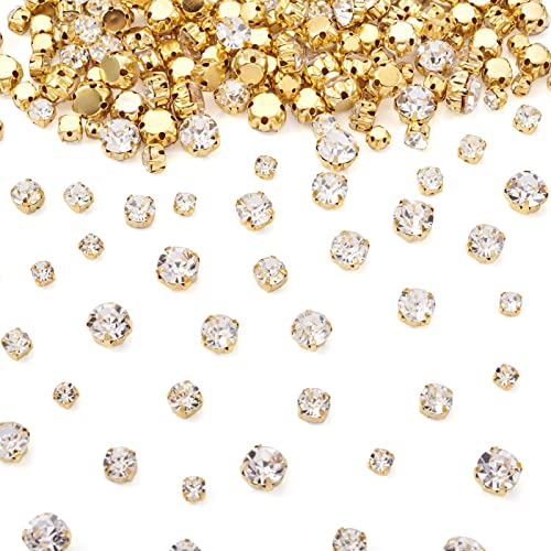 PandaHall 780 st sy på glas strass, platta runda, blandade storlekar, sy på strass med fästkrokar, med platt baksida, ädelstenar med gyllene stiftinfattningar för dekoration av klänningar, kläder, skor, väskor.
