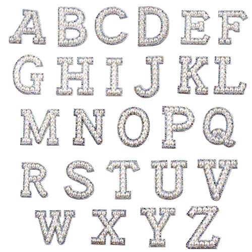 Alnicov 26 st strass bokstav lapp A-Z alfabet applikation 3D sy på alfabetet broderad bricka dekorera reparationslappar för hattar skjortor skor jeans väskor (vit)