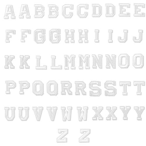 LUTER 52 st. påstrykningsbara bokstavslappar, alfabetsapplikationslappar, sy på applikationer med självhäftande broderade A-Z bokstavsmärke, dekorativa reparationslappar för hattar, skor, väskor, kläder (vit)