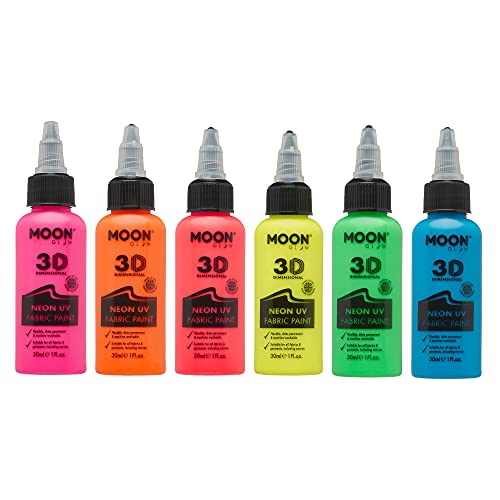 Moon Glow – neon UV 3D tygfärg – 30 ml – textilfärg för kläder, t-shirts, väskor, skor och duk (set med 6)