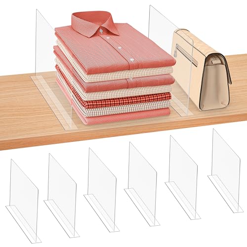 FNG8 Genomskinliga Akrylhyllavdelare [6-Pack] - Vertikala Garderobsavdelare för Sovrum, Kök, Butik, Kontor - Transparenta Lådsavdelare för Kläder, Handdukar, Strumpor, Skor, Väskor, Böcker, Inredning