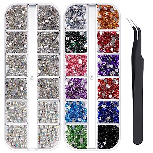 PLABBDPL 2 400 st nagelglitter strass, klara diamanter och kristalldiamanter AB för nageldekoration med 1 nagelklämma kläder, skor, väskor