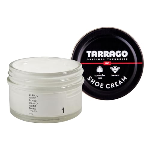 Tarrago skokräm – premium skokräm för ultimat lädernäring, glans och skydd för läder och syntetiska läderskor, skor, väskor och tillbehör 50 ml, Vit (01), 50 ml